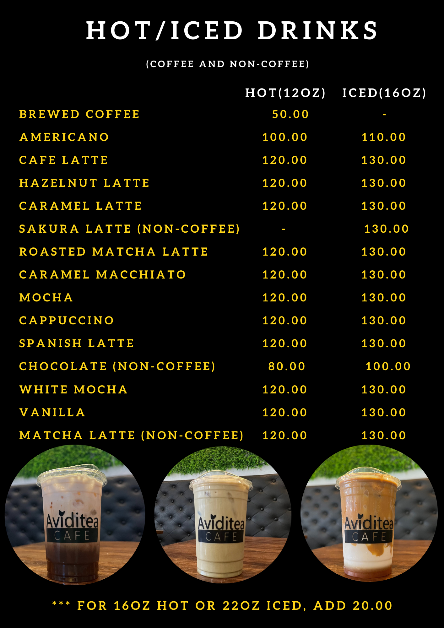 Our café now offers a range of products, including milktea, frappe, freshly squeezed lemonade, chicken wings, pasta, and a lot more. We continuously explore new culinary horizons, creating innovative and exciting dishes that leave a lasting impression.